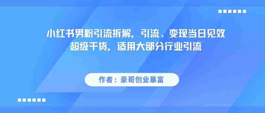 小红书男粉引流,最快当日可以变现,项目只做拆解