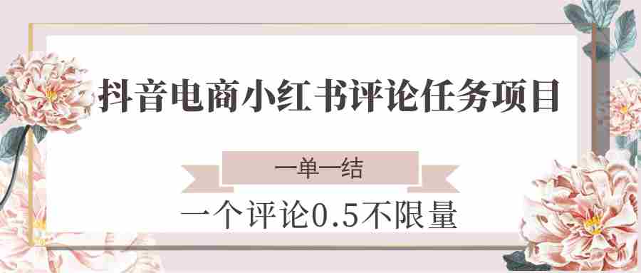 抖音电商小红书评论任务项目,一个评论0.5,一单一结 不限量