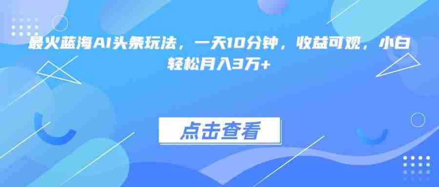 最火蓝海AI头条玩法,一天10分钟,收益可观,小白轻松月入3万+