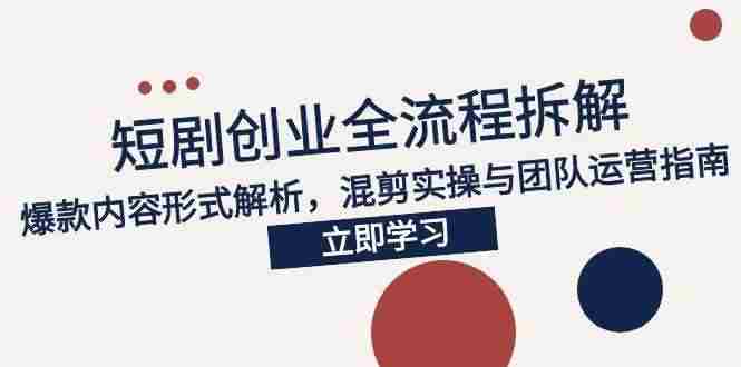该课程系统讲解短剧项目从市场分析到变现的全流程,覆盖爆款内容创作、混剪技术、团队运营等核心模块,重点拆解抖音短剧的创作秘诀与避坑指南,通过拉片教学强化实战能力,定位轻资产创业赛道。