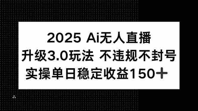 2025 AI无人直播升级3.0玩法,不违规 不封号,单日稳定收益150+