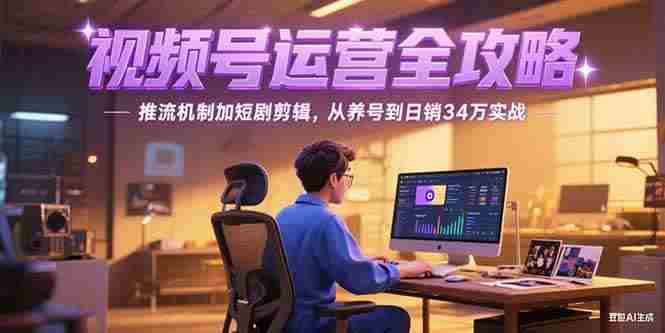 视频号直播教程系统覆盖从账号注册、推流机制到变现全流程,包含多号矩阵运营、短剧广告剪辑、数字人口播等核心技术,整合34万日销案例及防搬运技巧,提供从养号到直播设置的完整SOP,适合新手快速掌握视频号运营核心技能。