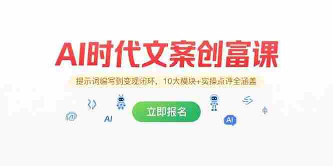 该课程为AI文案创作大师班,由兔妈2025年重磅推出,聚焦AI时代文案创作与变现全流程。课程包含10大核心模块,涵盖提示词编写、IP打造、私域变现、公域获客、带货脚本等实战内容,每节课配套实操点评加餐,帮助学员从工具使用者进阶为AI指挥官,实现文案量产与商业变现。