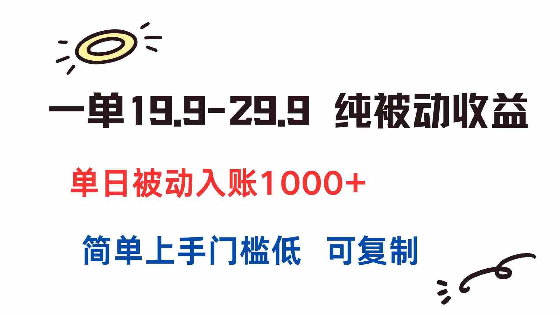 一单19.9-29.9 纯被动收益 单日被动入账1000+ 简单上手门槛低 可复制