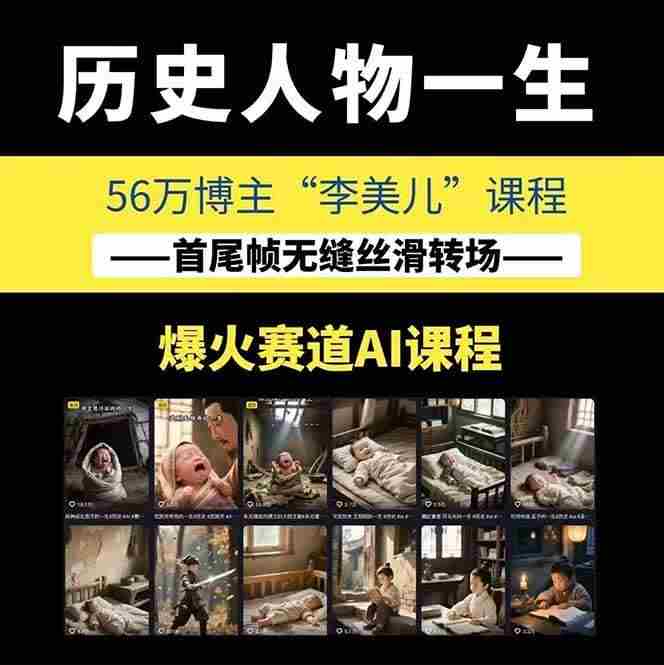 这是一个聚焦AI历史人物赛道的短视频创作培训项目,通过系统化课程帮助创作者快速掌握爆款内容制作技巧。项目包含历史人物IP打造、首尾帧无缝转场技术、智能体视频制作等核心教学内容,配套300万播放量案例拆解和运镜手法图库。采用阶梯式学习路径设计,从基础片段剪辑到高级运镜技巧分四个阶段推进,并提供学员专属的MV制作课程与抖音运营答疑服务。该项目已通过"对标李美儿"的运营策略验证市场潜力,曾有学员实现2个月涨粉56万的成绩,现开放伙伴计划支持创作者变现。