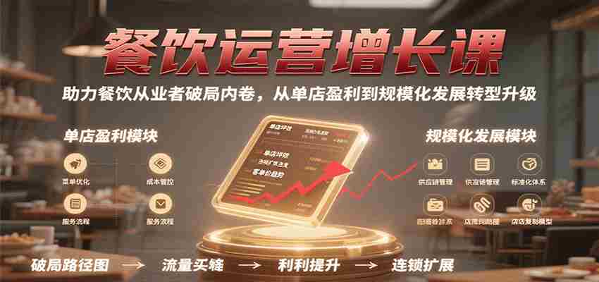 本课程是餐饮行业全生命周期管理的实战指南,涵盖从单店运营到连锁扩张的核心知识体系。课程以"破局内卷-打造单店-建立品牌-团队管理-连锁发展"为主线,系统讲解餐饮企业四大基础架构建设,深度剖析人才招募、领导力培养、股份制改革等管理难题,并提供招商加盟、分店拓展的完整方法论,助力餐饮从业者实现从单店盈利到规模化发展的转型升级。