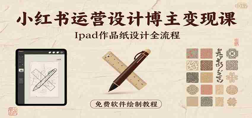 课程来自的小红书运营设计博主独立变现。作品纸设计全流程都有,教你用免费软件画格子、做古风底纹,连烧边纸、印章这些细节技巧都拆解得明明白白。拿iPad就能上手,学完既能自己做作品纸,也能接定制单。我踩过的坑都在课里了,跟着走少绕路。