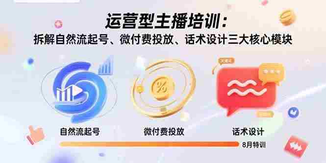 课程来自久久疯牛的打造运营型主播。电商不断的在变化,我们也要不断的改变,更上规则,跟上基地的实操经验,起号先起人,不断丰富自己的运营知识。直播起号全流程,话术设计,点对点和拉全场话术技巧,留人话术设计等。
