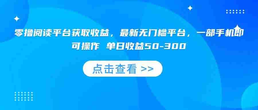 零撸阅读平台获取收益,最新无门槛平台,一部手机即可操作 单日收益50-300