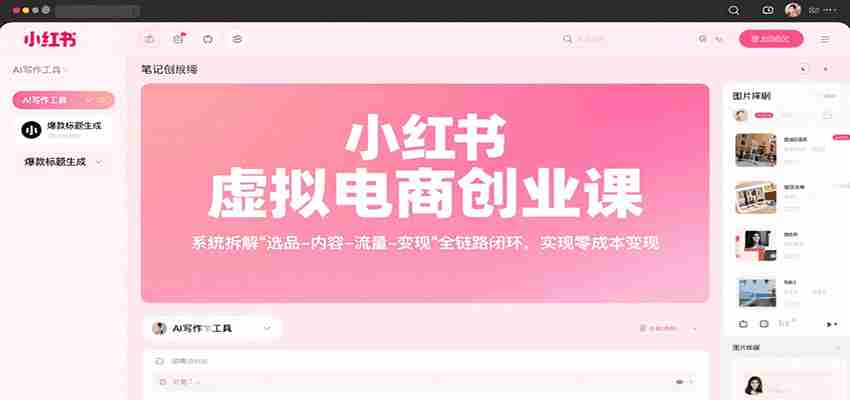 本课程专为小红书虚拟电商创业者打造,系统拆解"选品-内容-流量-变现"全链路闭环,融合AI技术与平台最新规则,通过21节实操课程+黑科技工具+4个月陪跑服务,助您快速实现虚拟资料零成本变现。