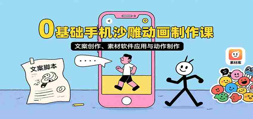 这是一门专为0基础学员设计的手机沙雕动画制作实践课程,从最基础的制作顺序、文案创作开始,逐步教授素材软件应用、动画功能使用、人物动作制作等核心技能,最后指导视频发布。课程包含13节理论课和3节实践课,总时长约2小时,采用循序渐进的教学方式,让学员快速掌握手机制作沙雕动画的全流程技能。