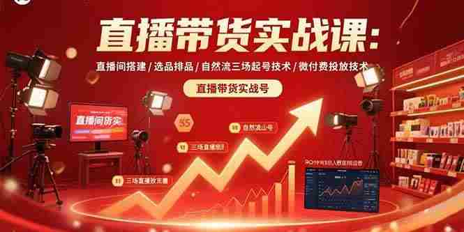 这是一套针对抖音直播带货的实战课程,系统讲解从0到1搭建自然流量直播间的完整方法论。课程包含直播间搭建、选品排品策略、自然流三场起号技术、微付费投放节点控制等核心内容,特别强化"钩子产品+亏品玩法"的流量获取技巧,以及违规后的应急调整方案,帮助新手快速掌握不依赖付费流量的直播带货体系。