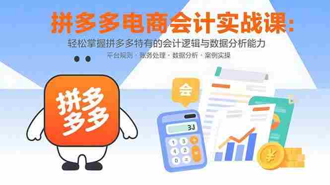 《拼多多电商会计实操课》是专为拼多多商家设计的财务管理系统课程,涵盖"资金管理-利润核算-经营分析"三大核心模块:1)资金管理(月度/年度报表编制、账单导出、趋势分析);2)利润核算(订单处理、成本匹配、退款计算);3)经营分析(保本测算、费用优化、比率计算)。通过34个实操案例,系统教授从资金对账到年度分析的全流程财务处理,帮助电商从业者掌握拼多多特有的会计逻辑与数据分析能力。