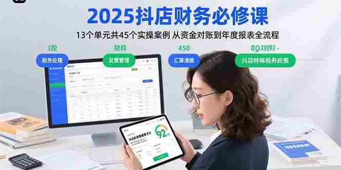《2025抖店电商会计实操课》是专为抖音小店设计的财务管理系统课程,涵盖"资金管理-利润核算-报表分析"三大核心模块:1)基础操作(账单下载/报表编制/费用分类);2)利润核算(订单处理/成本匹配/退款计算);3)决策分析(保本测算/费用优化/趋势预测)。通过13个单元共45个实操案例,系统教授从资金对账到年度报表的全流程财务处理,帮助电商从业者掌握抖音小店特有的会计逻辑与数据分析能力。