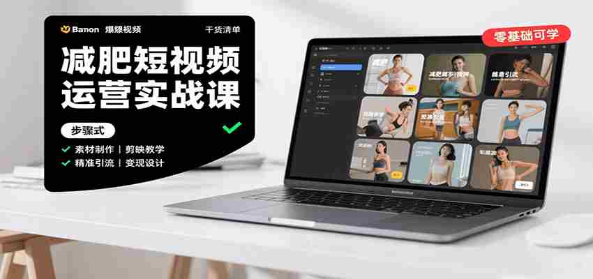 本课程专注减肥短视频赛道运营,涵盖从素材准备(插画/背景视频/音乐)到视频制作(电脑/手机版剪映教学)的全流程,重点讲解精准引流技巧(对标账号分析/爆款素材获取)与变现路径设计(公域转私域策略),提供标准化内容生产模板与违规规避方法。