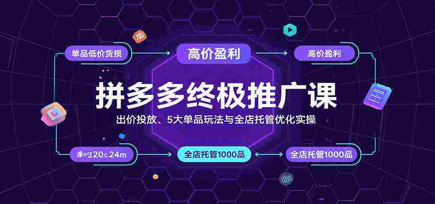 《拼多多爆款推广技术48期》是一门专注于拼多多平台爆款打造与推广策略的深度实操课程。课程围绕"推广技术"和"运营策略"两大核心模块,系统讲解投放细节(净成交/出价策略)、极速起量时机判断、五大爆款玩法(低价货损/高价盈利/裂变矩阵等),并重点解析全店托管技术(单品计划/高投产矩阵)、7天投产优化等进阶操作,最终覆盖断流处理与千品同步运营等实战场景。通过15节课程构建"精准投放→爆款孵化→全店托管→风险应对"的完整闭环,特别强化2025年最新托管浮动优化技术,适合已有基础的拼多多商家突破流量瓶颈。