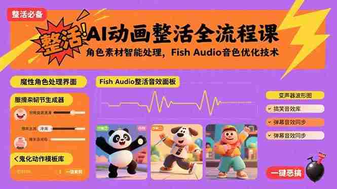 《AI整活动画制作》是一门聚焦AI动画全流程的实战课程,涵盖从角色素材处理到音效优化的完整制作链。课程以AI角色动画生成(已处理角色库)、视频剪辑技术(素材处理与拼接)、音色优化(Fish Audio工具)为核心,配套动作捕捉适配、多平台输出格式等模块,结合2025年最新AI动画技术,帮助学员快速掌握从素材到成片的AI动画制作全流程。