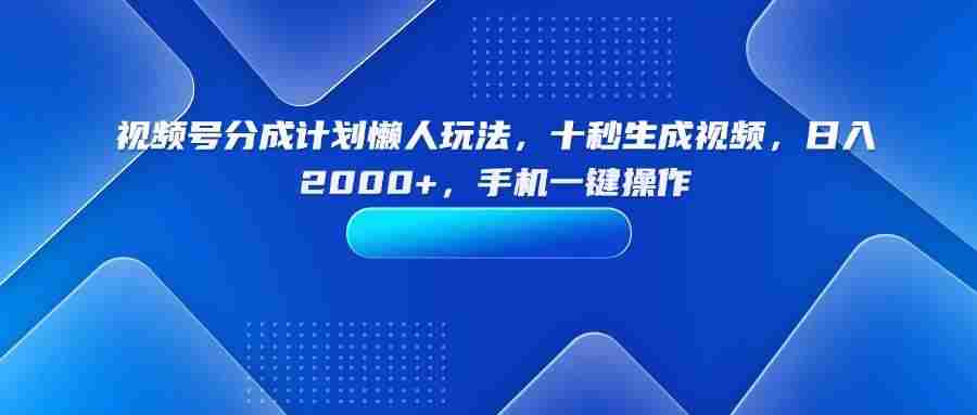 视频号分成计划懒人玩法,十秒生成视频,日入2000+,手机一键操作