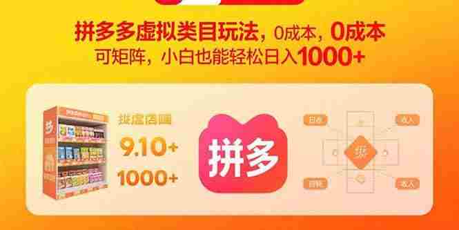 项目介绍:给大家来一个0成本,可以矩阵放大开工作室发展,非常适合小白的项目,拼多多虚拟类目玩法,日入1000+的最新玩法,并且虚拟类目可以利用软件机器人发货,回复!
