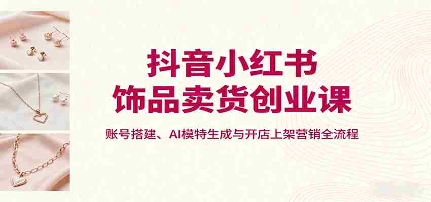 本课程专为饰品从业者打造,聚焦小红书、抖音双平台营销。从饰品赚钱方式、售卖渠道解析,到账号主页搭建六要素、起号第一步,手把手教新手入门。还详解内容发布、标题撰写、爆款封面制作技巧,以及朋友圈运营方法。货源选择、抖音开店上架(耳环 / 项链)、类目审核问题解决全覆盖,更有 AI 生成模特、产品图贴模特实操教学,让新手快速掌握饰品线上营销全流程,轻松开启变现路。