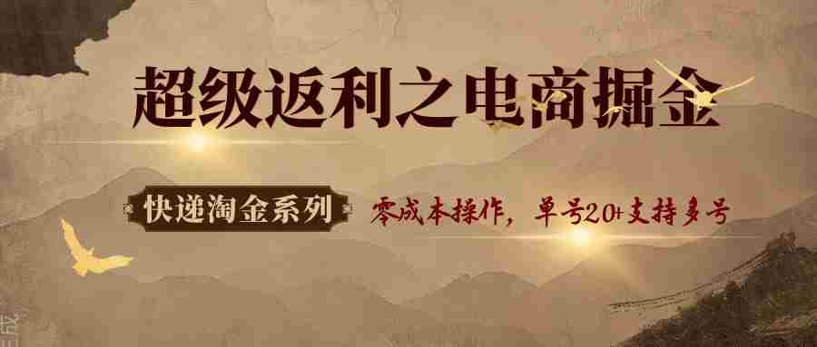 快递淘金系列;超级返利之电商掘金,零成本操作,单号20+支持多号